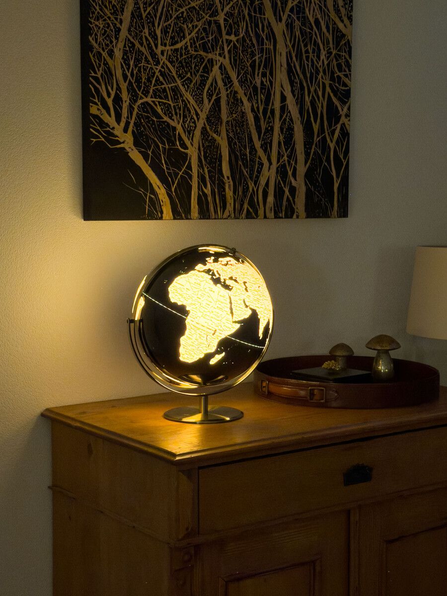 - Attraktives Design: Matter LED-Globus JURI LIGHT FLEX (30 cm Durchmesser) mit beleuchtetem Kartenbild. Die Länderflächen in bronzefarben und die dunkelblauen Meere sorgen für einen faszinierenden Kontrast. Beschriftung in englischer Sprache mit Angaben zu Kontinenten, Ländern, Ozeanen, geografischen Zonen, wichtigen Städten und Gebirgen.