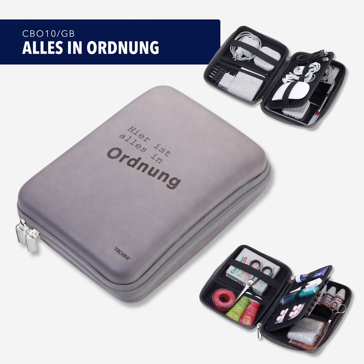 The super-practical, organiser case gives you an escape from questioning the system. Cables, adapters and chargers, cosmetic utensils, first aid kit: EVERYTHING IN ORDER organises the day to day, on the road and at home. Its durable hardcover protects simply everything that you value. Life really can be this clear and concise!