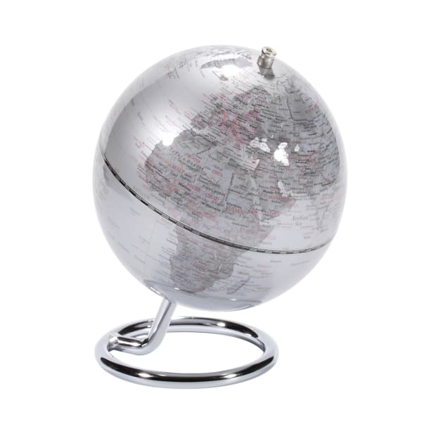 - Attraktives Design: Glänzender zweifarbiger Globus GALILEI (13 cm Durchmesser) mit silbernen Länderflächen und roten Meeren, in englischer Sprache beschriftet, mit Kontinenten, Ozeanen, Ländern, geographischen Zonen und wichtigen Städten.