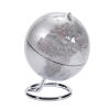 Globus mit 13 cm Durchmesser, verchromter, ringförmiger Metallfuß, bewegliche Achse, Kunststoff, Metall, glänzend, silberfarben