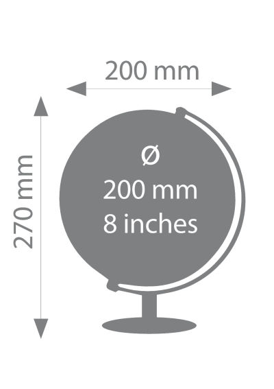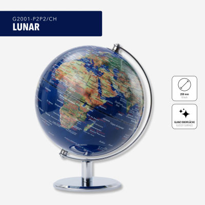 - Attraktives Design: Glänzender physischer Globus LUNAR (20 cm Durchmesser), mit grünbraunen Länderflächen und dunkelblauen Meeren, in englischer Sprache beschriftet, mit Kontinenten, Ländern, Ozeanen, geographischen Zonen, wichtigen Städten, Gebirgen und Wüsten.