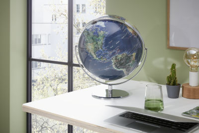 - Hochwertige Verarbeitung: Großer Tischglobus mit einer Gesamthöhe von 36 cm, durch seine zwei Achsen ist jeder Winkel sichtbar, steht auf einem stabilen verchromten Metallfuß. Beeindruckendes Design und hochwertige Oberflächen.