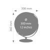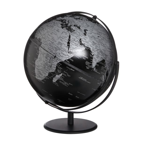 - Attraktives Design: Glänzender Globus JURI (30cm Durchmesser) zweiachsig, mit silbernen Länderflächen und silbernen Meeren in englischer Sprache beschriftet, mit Kontinenten, Ozeanen, Ländern, geographischen Zonen, wichtigen Städten und Gebirgen.