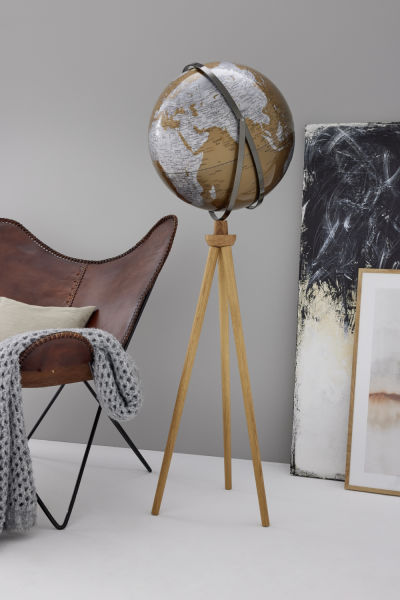 - Hochwertige Verarbeitung: Standglobus mit einer Gesamthöhe von 140 cm, durch seine zwei Achsen ist jeder Winkel sichtbar, steht auf einem dreibeinigem Eichenholzgestell. Beeindruckendes Design und reliefartige hochwertige Oberflächen zeichnen den Globus aus.