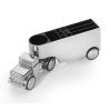 Stifteköcher und Büroklammernhalter/Briefbeschwerer, LKW, Rückziehmotor, bewegliche Achse, Magnet für Büroklammern, inkl. 5 Büroklammern , Metallguss, verchromt, glänzend, silberfarben