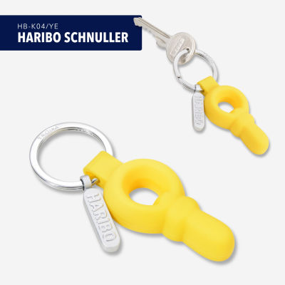 - Der süße Schnuller zum Lutschen, jetzt als hochwertiger Schlüsselanhänger. Mit geprägtem HARIBO-Schriftzug am Schlüsselring