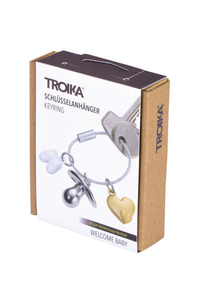 Babyschuhe, Schnuller und Herzen – das funktioniert ohne Worte und wird überall verstanden. Das ideale Mitbringsel, wenn man zur Ankunft des Babys gratulieren möchte. Teilweise verchromt und mit Drehverschluss zum Befestigen am Schlüsselbund. Achtung, hoher Niedlichkeitsfaktor!
