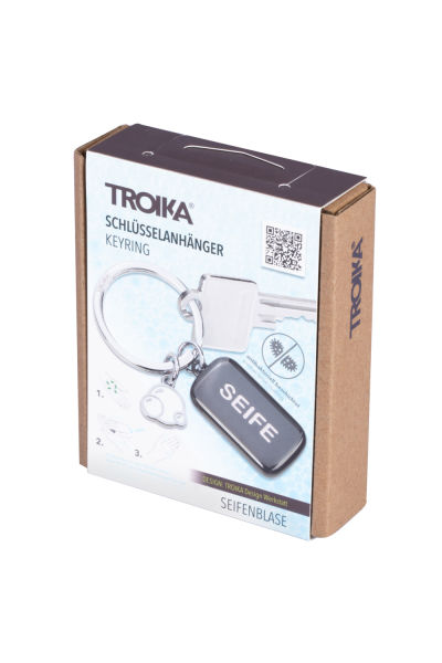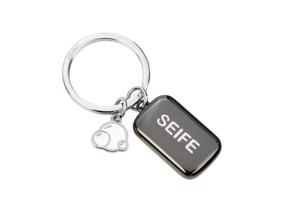 Schlüsselanhänger antibakteriell beschichtet (Seifen-Charm), Seifenstück und Seifenblasen, tötet 99,9% der Oberflächenbakterien ab, Metallguss, glänzend, schwarz/silberfarben/weiß