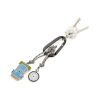 Schlüsselanhänger mit Karabinerhaken, 2 Anhänger an dekorativem Kletterseil: Wanderrucksack und Kompass, Aluminium, Emaille, Metallguss, Nylon, mehrfarbig