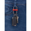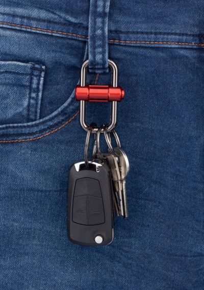 Coole Technik für alle, die öfter mal die Schlüssel wechseln. Einfach per Knopfdruck die Verriegelung lösen, und der Metallbolzen gleitet geschmeidig nach links oder rechts und gibt die Schlüsselringe frei. Aus massivem Metallguss in Gunmetalgrau mit silbernem, schwarzem, grauem, blauem oder rotem Verschluss.