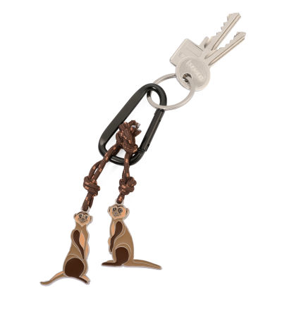 Schlüsselanhänger mit Karabinerhaken, 2 Anhänger an dekorativem Kletterseil: Erdmännchen, Aluminium, Emaille, Metallguss, Nylon, glänzend, braun