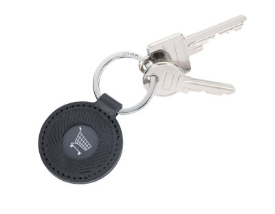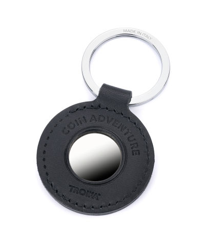 Schlüsselanhänger aus hochwertigem italienischen Echtleder mit Einkaufswagenchip aus Metall, seitliche Öffnung zur Entnahme des Chips, auch für 1€-Münzen geeignet, Prägung: Vorderseite Musterprägung, Rückseite: COIN ADVENTURE, Handarbeit, MADE IN ITALY, Leder, Metall, schwarz