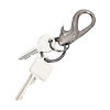 Schlüsselanhänger mit 2 Ringen zur Schlüsselorganisation, Karabiner, organisches Design, geschwungener Haken dient als Flaschenöffner, Metallguss, verchromt, matt, gunmetal