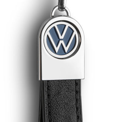 Schlüsselanhänger VW-Logo, Lederschlaufe, Leder, Metall, glänzend, blau/schwarz/silberfarben