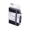 Notizblock DIN A7 inkl. Kugelschreiber, Elastikband-Verschluss, Stiftschlaufe, Lesezeichen, geprägtes Lineal (10 cm) auf Cover, FSC zertifiziertes Papier, 64 perforierte Blätter (128 Seiten), Punktraster, Fach für Belege, Multitasking-Kugelschreiber CONSTRUCTION LILIPUT (klein), schwarze Mine , Kunstleder, Metall, matt, schwarz