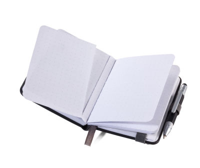 - Block mit perforierten Seiten und praktischem Punkteraster - zusätzliches Fach für Belege - FSC zertifiziertes Papier- Stift mit schwarzer Mine