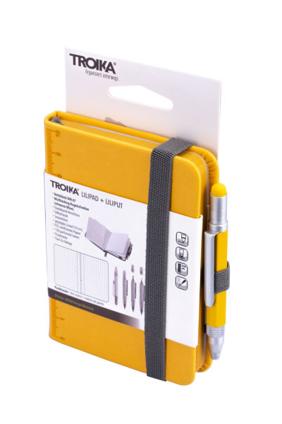 Unser kleinster Multitasking-Kugelschreiber LILIPUT hat jetzt einen starken Partner: LILIPAD, das große kleine Notizbuch im Format DIN A7. Mit geprägtem 10-cm-Lineal und Elastikband-Verschluss, Block mit perforierten Seiten und praktischem Punktraster. Zusätzliches Fach für Belege oder Karten. LILIPAD + LILIPUT – so klein und doch so ein bärenstarkes Team.