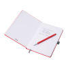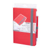 Notizblock DIN A5 inkl. Kugelschreiber, Elastikband-Verschluss, Stiftschlaufe, Lesezeichen, geprägtes Lineal (20 cm) auf Cover, FSC zertifiziertes Papier, 64 perforierte Blätter (128 Seiten), Punktraster, Fach für Belege, Kugelschreiber CONSTRUCTION BASIC (schwarze D1 Mine), Kunstleder, Metall, matt, rot