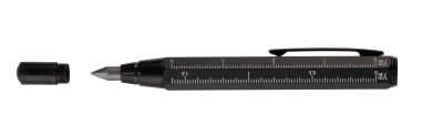 Zimmermannsbleistift, Fallminen-Stift (5,6 mm HB-Mine), Zentimeter-/Zoll-Lineal, 1:20 m/1:50 m Skala, integrierter Anspitzer, Messing, schwarz