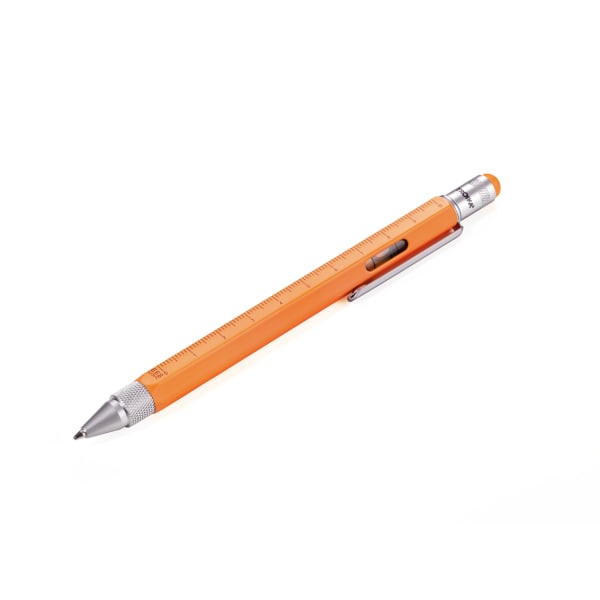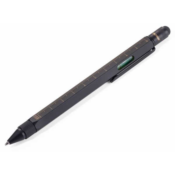 - Kugelschreiber, Planungshilfe und Werkzeugkoffer in einem. Mit Zentimeter- und Zoll-Lineal, 1:20 m und 1:50 m Skala, Wasserwaage, Schlitz- und Kreuzschraubendreher und Stylus