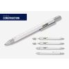 Multitasking-Kugelschreiber, Zentimeter/Zoll-Lineal, 1:20 /1:50 Skala, Wasserwaage, Schlitz-/Kreuzschraubendreher, Stylus, schwarze Mine, Messing, lackiert, silberfarben