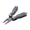 Mini-Werkzeug Schlüsselanhänger mit 10 Funktionen, integrierte Feder, Drahtschlaufe für Schlüssel, Zange, Messer, Säge, Flaschenöffner, Schlitzschraubendreher in 3 Größen, Kreuzschraubendreher, Holz- und Metallfeile, Seitenschneider, Vorstecher (Ahle), 420 Edelstahl, Aluminium, eloxiert, matt, grau