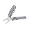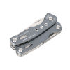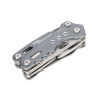 Multifunktions-Werkzeug Rucksack Tool mit 15 Funktionen, integrierte Feder und Feststellfunktion, Spitzzange, Zange, Seitenschneider, Messer, Säge, Schlitzschraubendreher, Dosenöffner, Feile, Karabiner, Flaschenöffner, sechskant Schraubenschlüssel, Werkzeuge im eingeklappten Zustand außenliegend, in Nylontasche mit Gürtelschlaufe, 420 Edelstahl, Aluminium, eloxiert, matt, grau