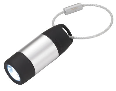 Taschenlampe und Schlüsselanhänger, weißes Licht, umweltschonend da wiederaufladbar über USB, Kunststoff, Metall, schwarz/silberfarben