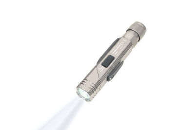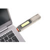 Taschenlampe / Knicklampe, multifunktional: Arbeits- und Sicherheitslicht, 5 Leuchtfunktionen, Frontlampe: 100% Licht + 50% Licht (weißes LED, 200 Lumen), seitliches COB-LED (150 Lumen): Arbeitslicht, rotes Licht, schnell blinkendes rotes Licht, Leuchtkopf um bis zu 90° abknickbar für optimales Ausleuchten, Magnetfunktion: am Haltefuß aufschrauben und drehbar an Metalloberflächen befestigen, Gürtelclip, 2.000 mAh Lithium Ionen Akku, umweltschonend da wiederaufladbar über integrierten USB-Stecker, spritzwassergeschützt (Wasserdichtheitsgrad IPX4), ABS Kunststoff, Aluminium, matt, titanfarben
