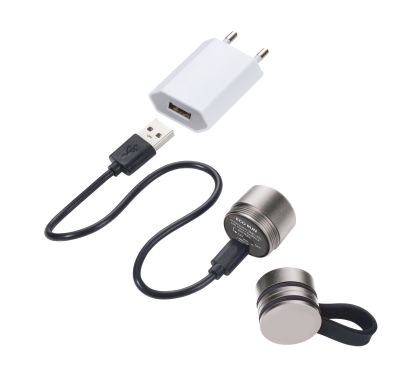 Taschenlampe, Sport- und Sicherheitslicht, inkl. Ladekabel, mit starkem Magnet zur Befestigung, weißes LED-Licht, 3 Leuchtfunktionen: 2 Lichtstärken + Blinklicht, umweltschonend da wiederaufladbar über USB-C (3,7 Volt - 0,5 Watt), Lithium Polymer Batterie 100 mAh, Überlade-/Tiefentladungsschutz, Aluminium, Silikon, matt, schwarz/titanfarben