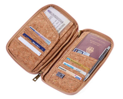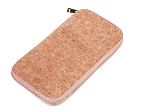Etui für Reisedokumente, mit Ausleseschutzfolie (für RFID-Chips), Reißverschluss, 12 Innenfächer, 50% Polyester/50% Kork, Stiftschlaufe, Kork, Polyester, matt, beige
