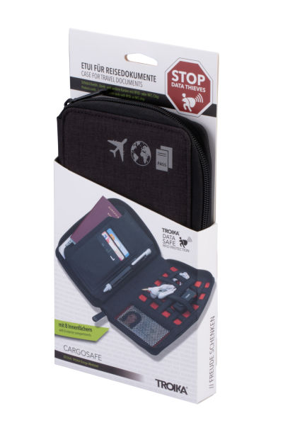 • Sicheres Reisen mit dem dazu nötigen Accessoire. Mit dem TROIKA CARGOSAFE verstauen Sie all Ihre Resiedokumente sicher und übersichtlich.