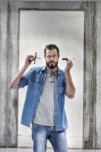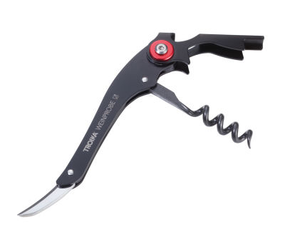 - Ein Kellnermesser mit Korkenzieher, Messer und Kapselheber.