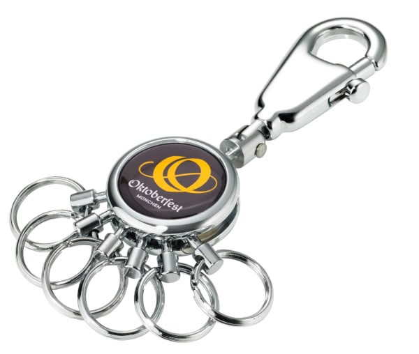 - Die Funktion unseres patentierten Key Organizers: Einfaches Aushaken und Austauschen der Ringe zur Nutzung einzelner Schlüssel – kann durch zusätzliche Ringe erweitert werden (Troika KR-KIT).