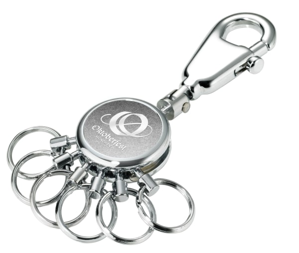 - Die Funktion unseres patentierten Key Organizers: Einfaches Aushaken und Austauschen der Ringe zur Nutzung einzelner Schlüssel – kann durch zusätzliche Ringe erweitert werden (Troika KR-KIT).