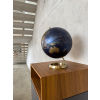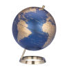 Globus mit 25 cm Durchmesser, verchromter Metallfuß in gebürsteter Optik, 23,5 Grad Neigung an beweglicher Achse, Kartenrelief, Kunststoff, Metall, matt, dunkelblau/goldfarben