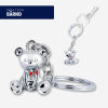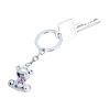 Schlüsselanhänger, Teddybär mit roter Schleife, Metallguss, verchromt, glänzend, silberfarben