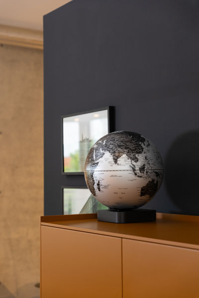 • Attraktives Design: Matter zweifarbiger Globus MAGNA ECO (30 cm Durchmesser), mit schwarzen Länderflächen und silbernen Meeren, in englischer Sprache beschriftet, mit Kontinenten, Ländern, Ozeanen, geographischen Zonen und wichtigen Städten.