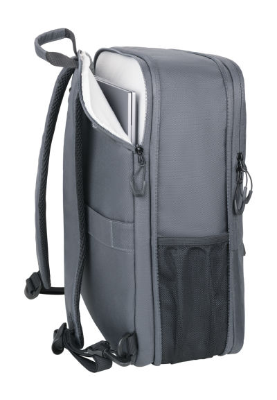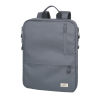 Laptop-Rucksack aus recyceltem Meeresplastik, erweiterbar durch zusätzlichen Reißverschluss, mit 2 großen Fächern (gepolstertes Laptopfach und Hauptfach) mit 2-Wege Reißverschluss, für Laptop (bis zu 16''), mehrere Innentaschen, 2 Frontfächer + expandiert 2 Netztaschen für Flasche und Schirm, verstärkter Standboden, Schlaufe zur Befestigung am Trolley, Tragegriff, versteckte Rucksackgurte, Kapazität von ca. 6 Liter auf ca. 14 Liter erweiterbar, 100% rPET, recyceltes Meeresplastik, dunkelgrau