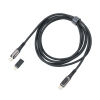Ladekabel High-Speed USB-C 100W PD Power Delivery auf USB-C, mit Datenübertragungsfunktion, volle Ladekapazität: max. 100W|20V|5A (ohne Adapter), abhängig vom zu beladenen Gerät, mit digitaler Anzeige der Ladeleistung, inkl. USB-C auf Lightning Adapter, Kabel textilummantelt (Netzstruktur), recyceltes Polyester, 2m Länge, Metall, Polyester, gunmetal/schwarz
