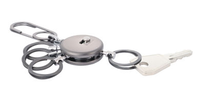 Schlüsselanhänger, rund, inkl. Karabinerhaken, 4 ausklinkbare Ringe, schnelles & einfaches Anbringen der Schlüssel dank patentiertem Öffnungsmechanismus (TROIKA NAIL GUARD), Messing, Metall, verchromt, matt, gunmetal