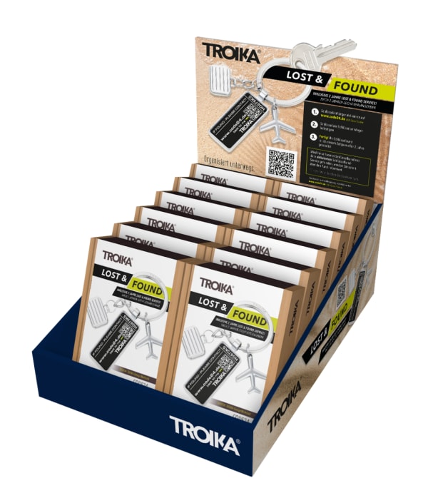 Thekendisplay inkl. 12 x CODE24 Schlüsselanhänger mit Lost & Found Service, vorsortiert (12 x KR25-06/MA), zur Selbstbedienung, Pappe, bedruckt, matt, mehrfarbig