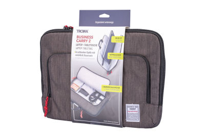 BUSINESS CARRY 2 bringt das mobile Office sicher und smart von A nach B – ideal für Business, Messen oder unterwegs im Alltag. Laptops und Tablets bis 14" (z.B. MacBook Pro) sitzen im gepolsterten Hauptfach mit Kantenschutz perfekt geschützt, Dokumente fixiert ein Elastikband, und der Griff ist bei Bedarf schnell ausgeklappt. Ladekabel, Maus & Co. finden ordentlich Platz im clever organisierten Frontfach - inklusive AirTag-Fach fürs gute Gefühl. Und das Beste: Dank Trolley-Schlaufe sind beide Hände frei. Klare Linien, funktionales Design, gemacht für unterwegs. In edlem anthrazit/schwarz in der TROIKA BUSINESS BAG-Serie.