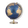 Globus mit 25 cm Durchmesser, antikgoldener, gebürsteter Metallfuß, bewegliche Achse, Kunststoff, Metall, matt, dunkelblau/goldfarben