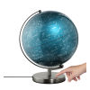 Globus mit 30 cm Durchmesser, integrierte Beleuchtung in 3 Helligkeitsstufen mittels Touch Funktion, inklusive Ladestecker mit GaN - und Schnellladetechnologie Power Delivery, 20W mit USB-C und USB-A Anschluss, verchromter, gebürsteter Metallfuß, Karte mit Sternensystem, bewegliche Achse, Kunststoff, Metall, glänzend, blau