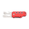 Mini-Werkzeug mit 11 Funktionen, Messer, Schlüsselanhänger (Drahtschlaufe), Fadenschneider, Flaschenöffner, Sechskantschlüssel (4 Größen), Kreuz- und Schlitzschraubendreher, Nippelspanner (Speichenwerkzeug in 2 Größen), 420 Edelstahl, Aluminium, eloxiert, matt, rot