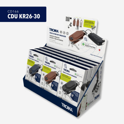 Thekendisplay inkl. 12 x TRACK & FIND KEY ORGANIZER Schlüssel Organizer mit Apple® Find My (KR26-30/..), vorsortiert (je 4 x KR26-30/BK, KR26-30/BR, KR26-30/DB), zur Selbstbedienung, Pappe, bedruckt, matt, mehrfarbig