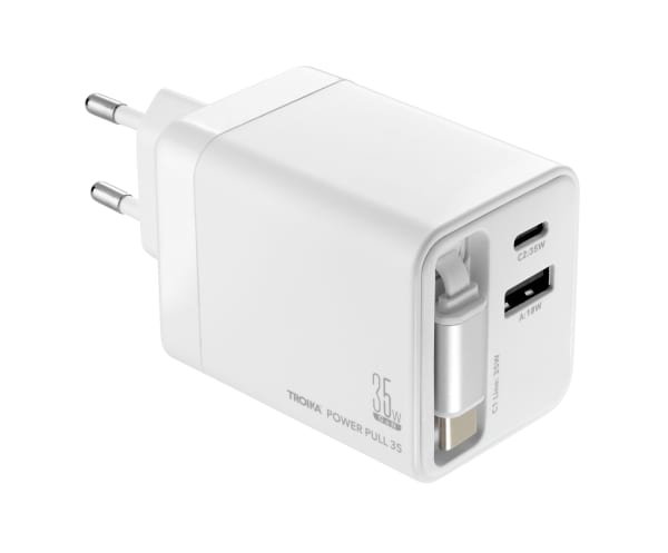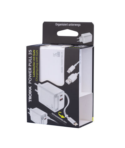- POWER PULL 35 ist doppelt stark – USB-C- und USB-A-Anschluss für gleichzeitiges Laden mehrerer Geräte.