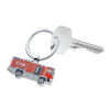 Schlüsselanhänger, Feuerwehrauto, Emaille, Metallguss, verchromt, glänzend, rot/silberfarben