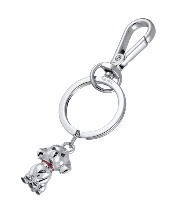 Taschenanhänger / Schlüsselanhänger mit Karabiner, kleiner Hund, Metallguss, verchromt, glänzend, silberfarben